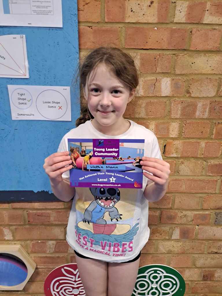 Trainee Level 1 General Gymnastics Coach, Gymnastics Helper Qualification, Level 1 Floor and Vault Judge and part of our Leadership Academy Programme