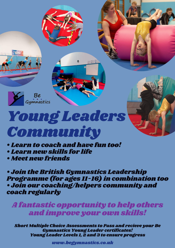 We are also happy to assist helpers with Duke of Edinburgh Qualifications so if you are interested in joining our Young Leaders Community, please pop us a message on our social media or email us at begymnasticsclub@gmail.com